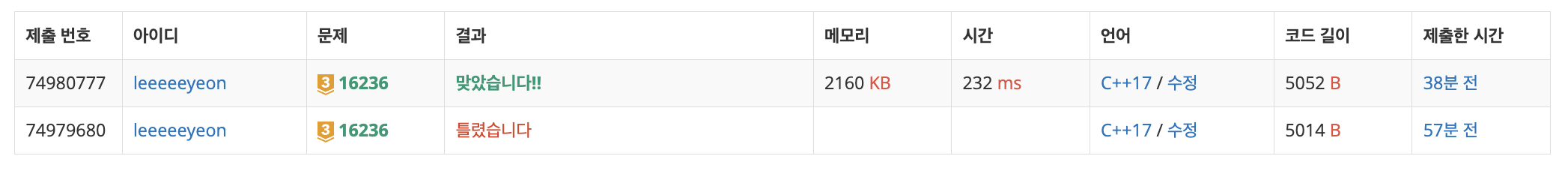 요즘 문제를 풀 때 최대한 효율적인 자료형을 선택하느라 고민 시간이 많이 소요되는데, 문제를 효율적으로 풀기 위해 변수의 범위를 보고 적당히 작을 경우에는 당장 떠오르는 자료형을 사용하여 빠르게 푸는 연습을 해야겠다.