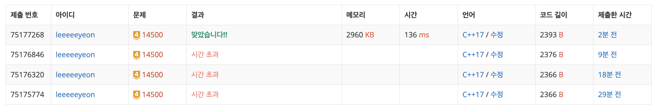아래와 같이 코드를 수정하여 시간 초과를 해결하고 문제를 맞출 수 있었다.