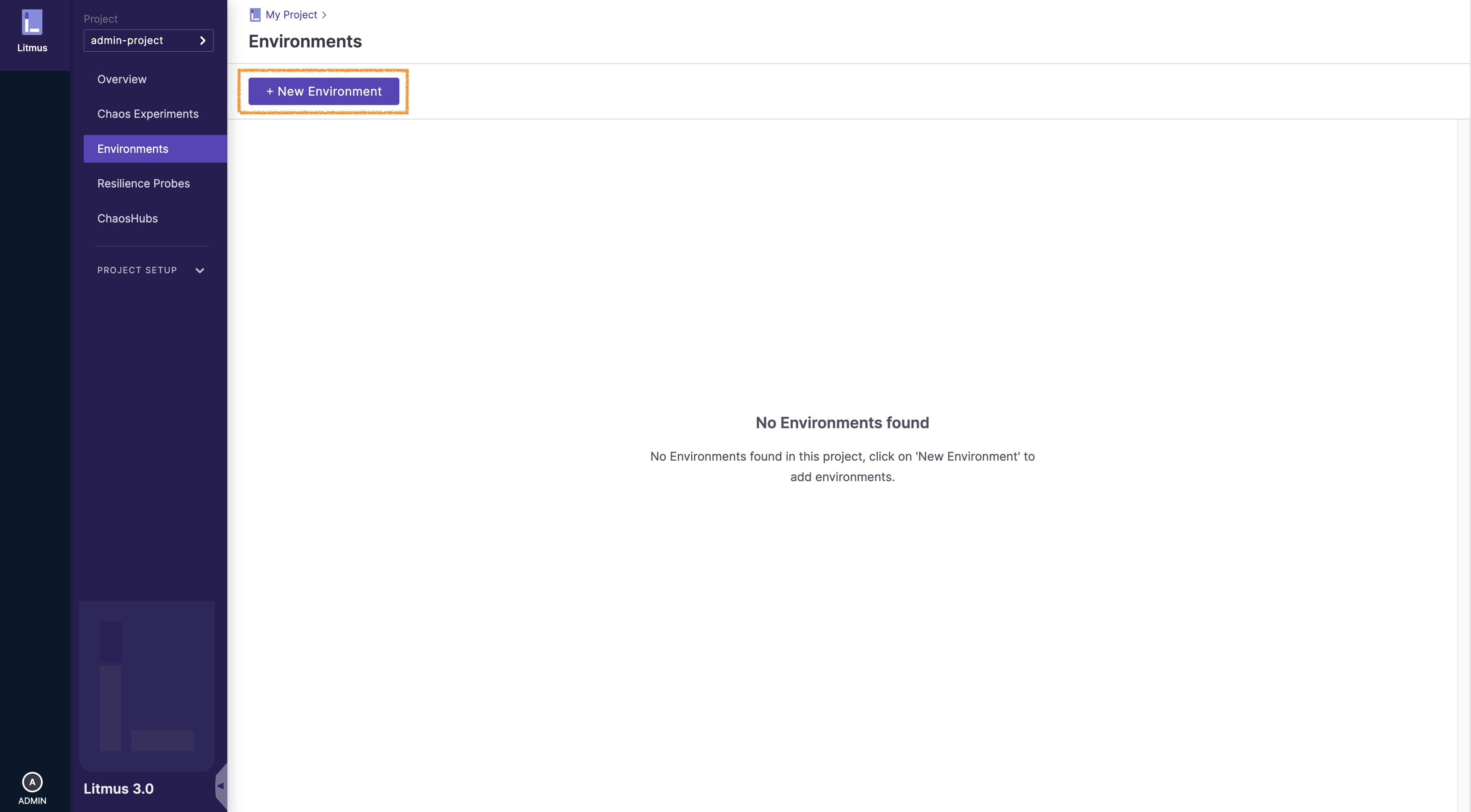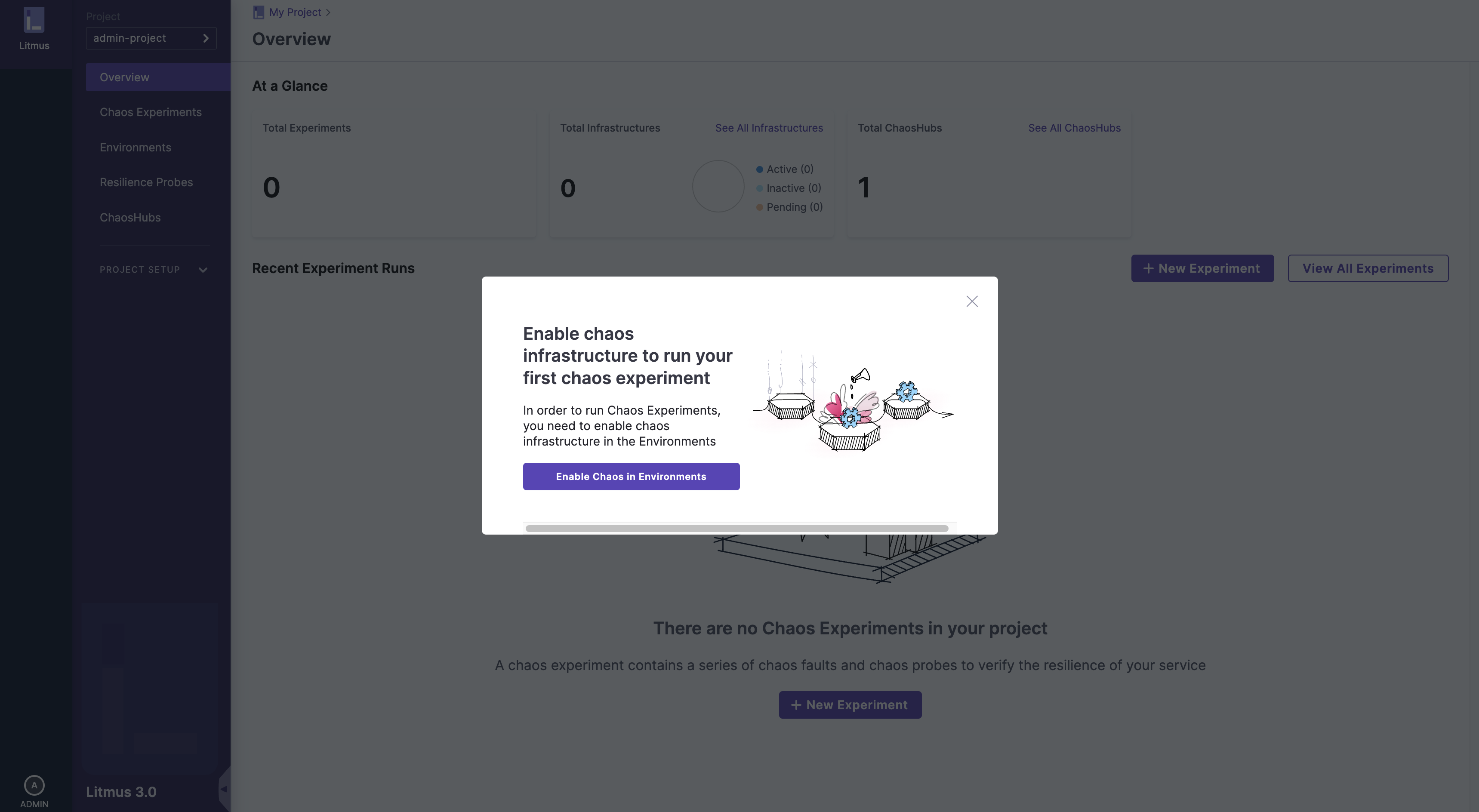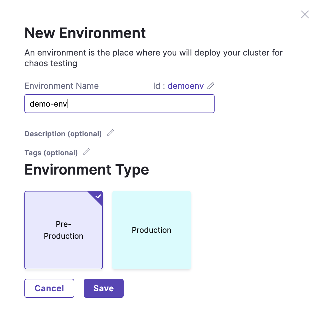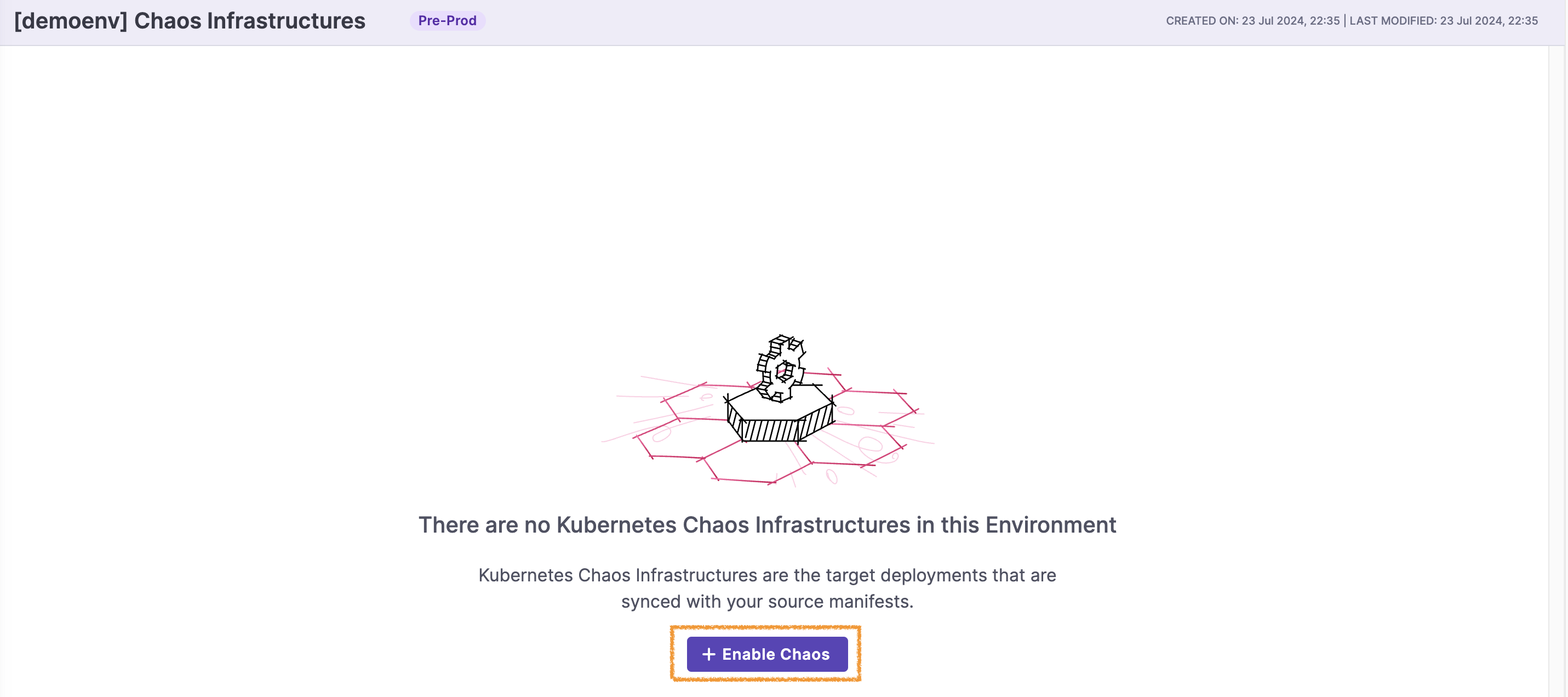 생성된 Environment 안에 들어가 Chaos Infrastructure를 만들어주자.