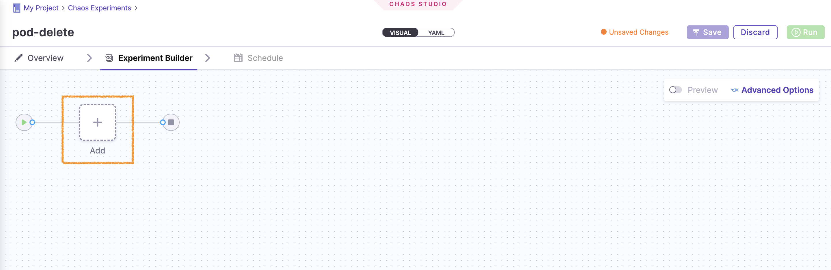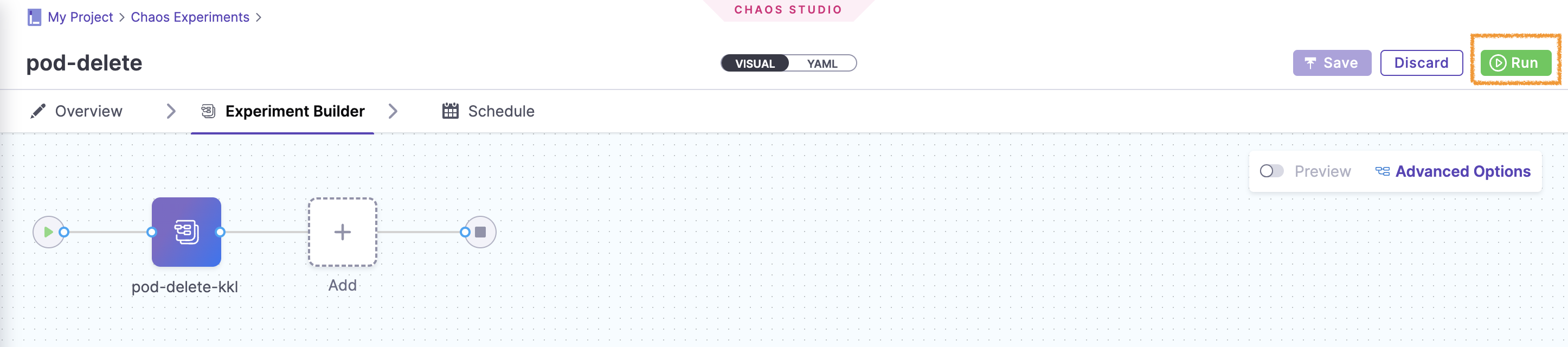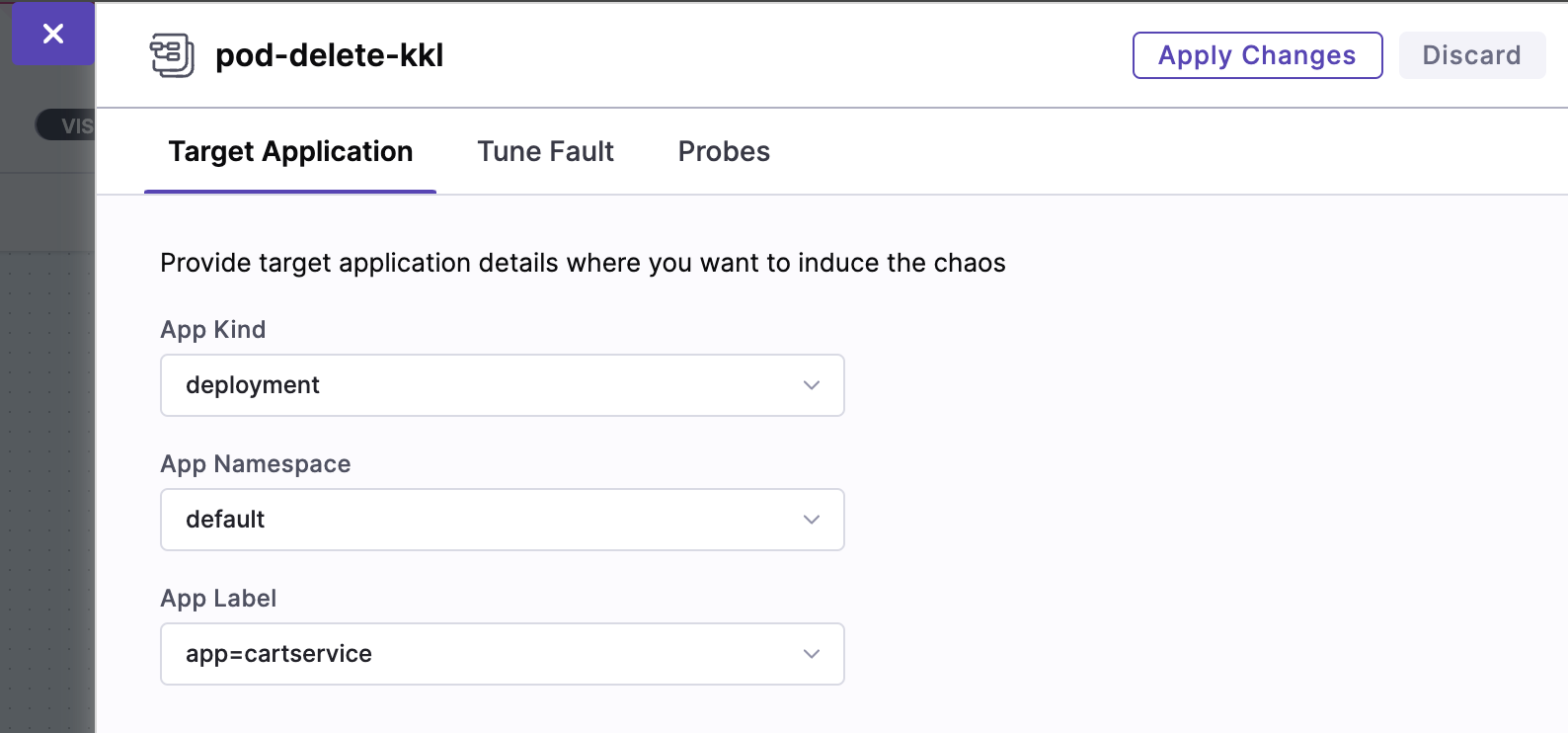 Chaos Experiments 탭에서 New Experiment 버튼을 눌러 Chaos Experiment를 생성해주자.