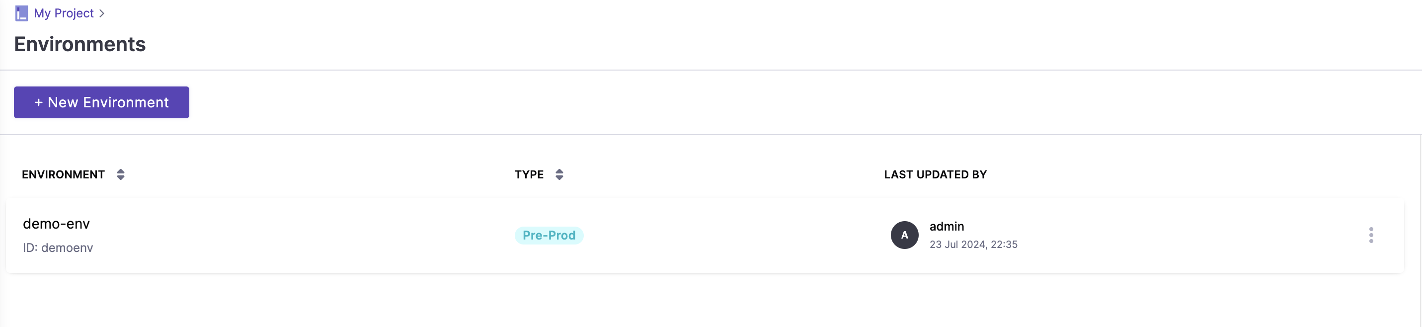 적당한 이름을 작성해주고 타입은 pre-production을 선택하여 Environment를 만든다.