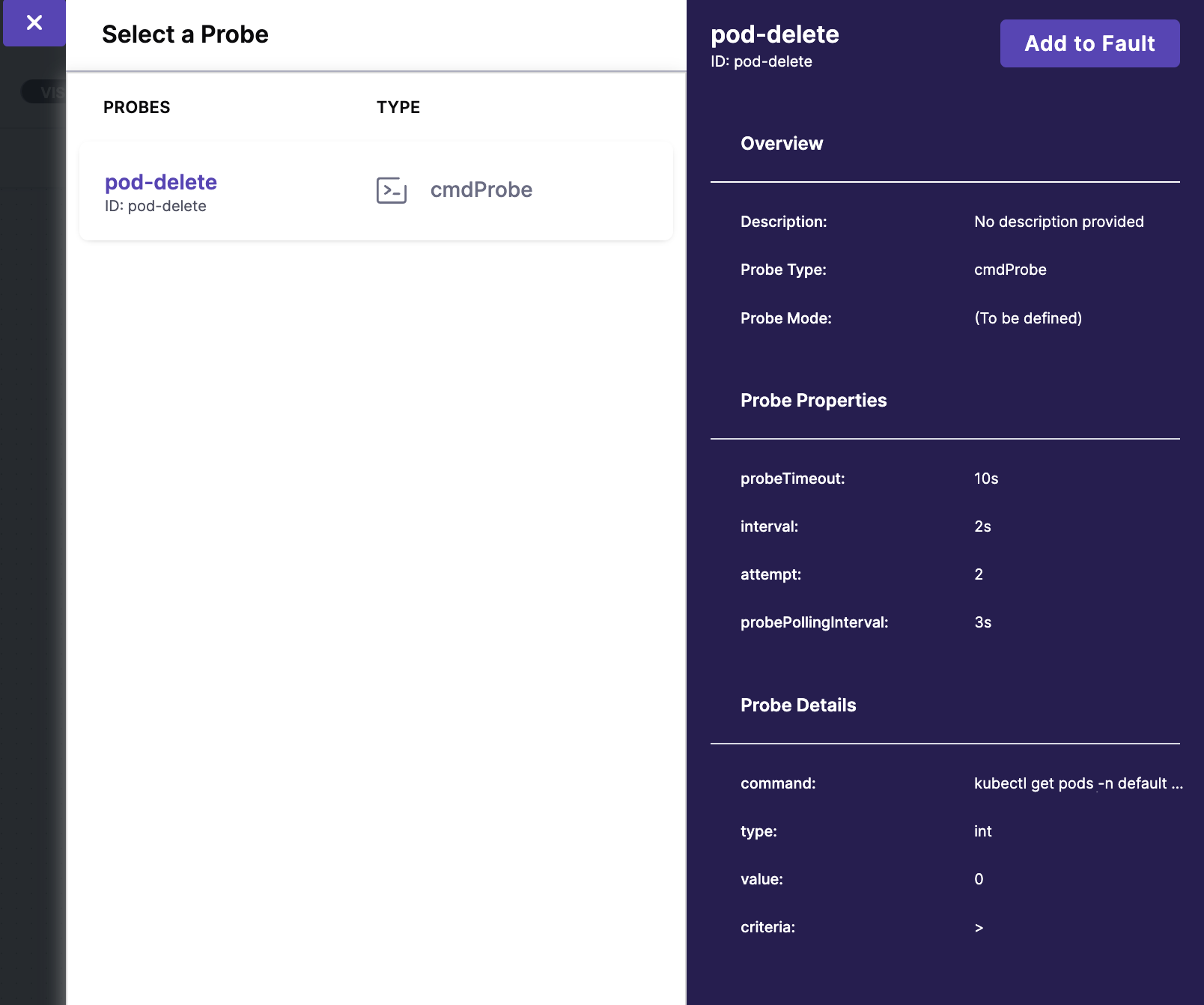 Add 버튼을 누르고, pod-delete를 선택한다.
