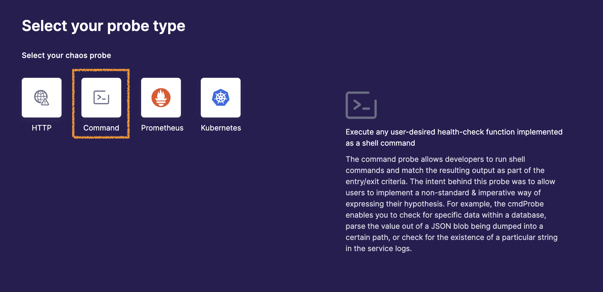 Probe 생성 버튼을 눌러 Command Probe를 선택한다.