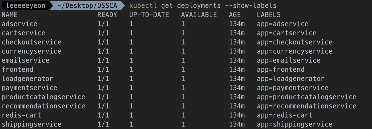 kubectl label deployment cartservice app=cartservice