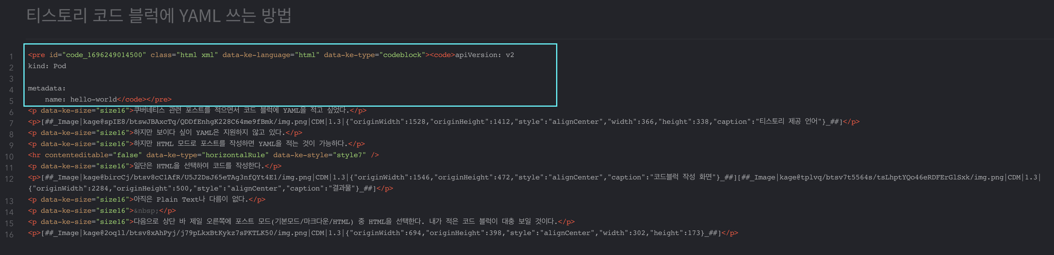 하지만 HTML 모드로 포스트를 작성하면 YAML을 적는 것이 가능하다.