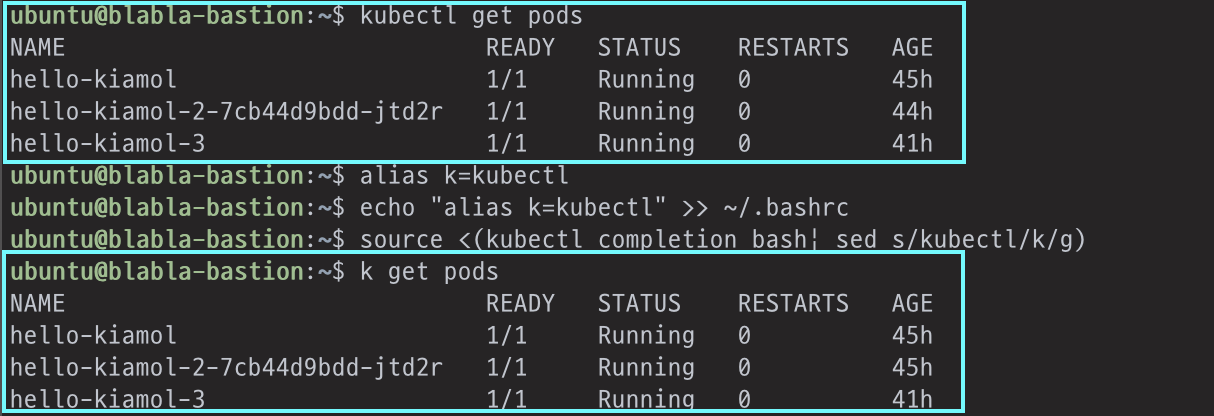 source <(kubectl completion bash| sed s/kubectl/k/g)