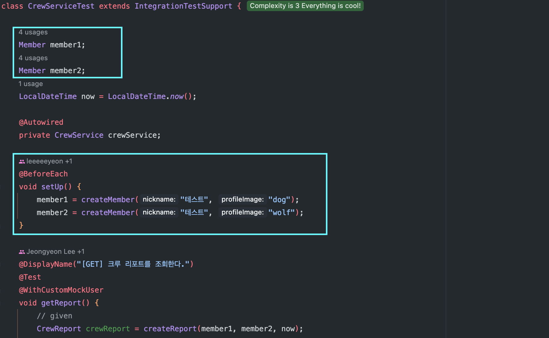 멘토링을 들으며 테스트 코드를 적을 때 member1, member2처럼 변수명에 숫자를 붙였던 일이 기억 났다.