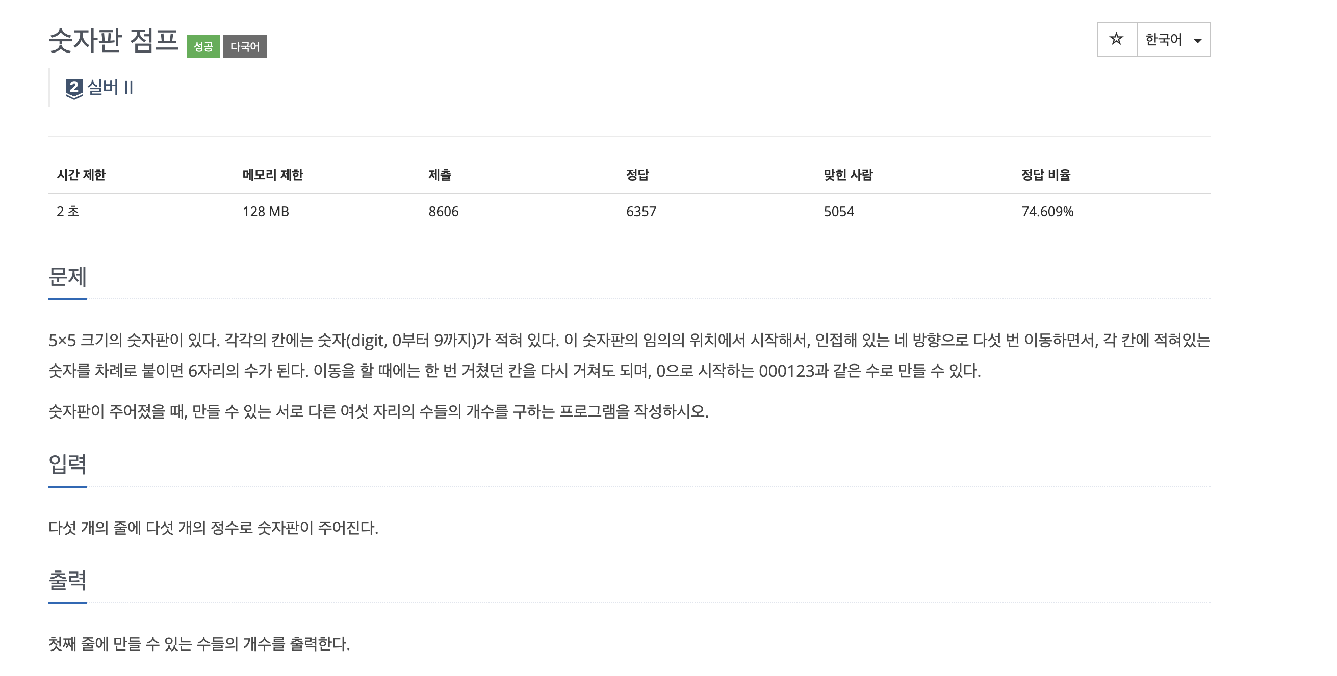 그리고 여섯 자리 수를 만들기 위해 깊숙이 들어가기 때문에 BFS(너비 우선 탐색)이 아닌 DFS(깊이 우선 탐색)을 사용해야 한다고 생각하였다.