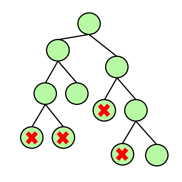 위 사진에서, X표가 쳐진 노드는 문제의 조건을 충족하지 못한 노드로 더 이상 depth가 깊이 들어가지 않는 것을 볼 수 있다. 이렇게 막히면 더 이상 깊이 들어가지 않는다. 또는, 문제 조건에 맞는 해답을 찾았을 때 나머지 경우의 수를 확인하지 않고 바로 return하는 것도 가능하다.