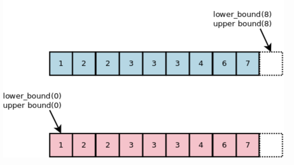 C++에서는 이분 탐색으로 원소를 탐색하는 lower_bound()와 upper_bound() 함수를 제공하고 있다.
