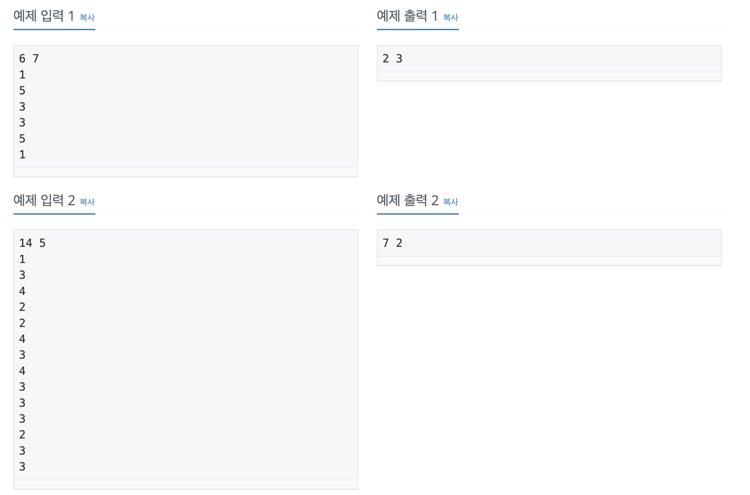 p = {n, 1}; // 장애물의 최솟값, 구간의 수