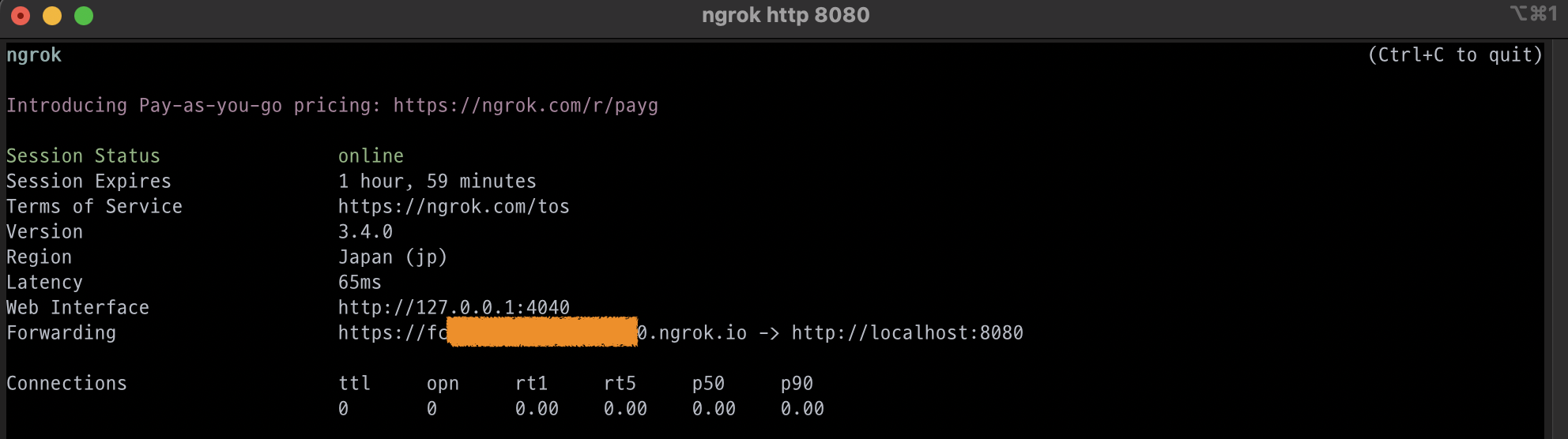 세션 유지 시간(Session Expires)이 지난 이후에도 ngrok을 다시 실행해야 하기 때문에 접속 URL이 변경된다.