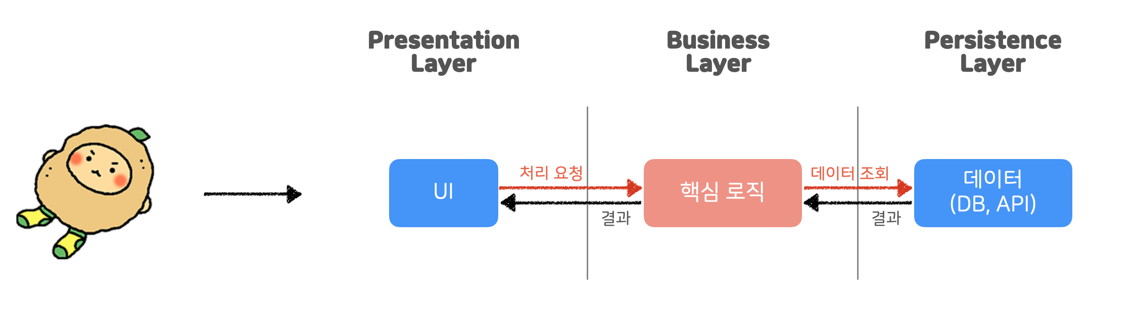 정리하면 Presentation Layer는 Business Layer에게 데이터 처리를 요청하고, Business Layer는 Persistence Layer에게 데이터 조회를 요청한다.