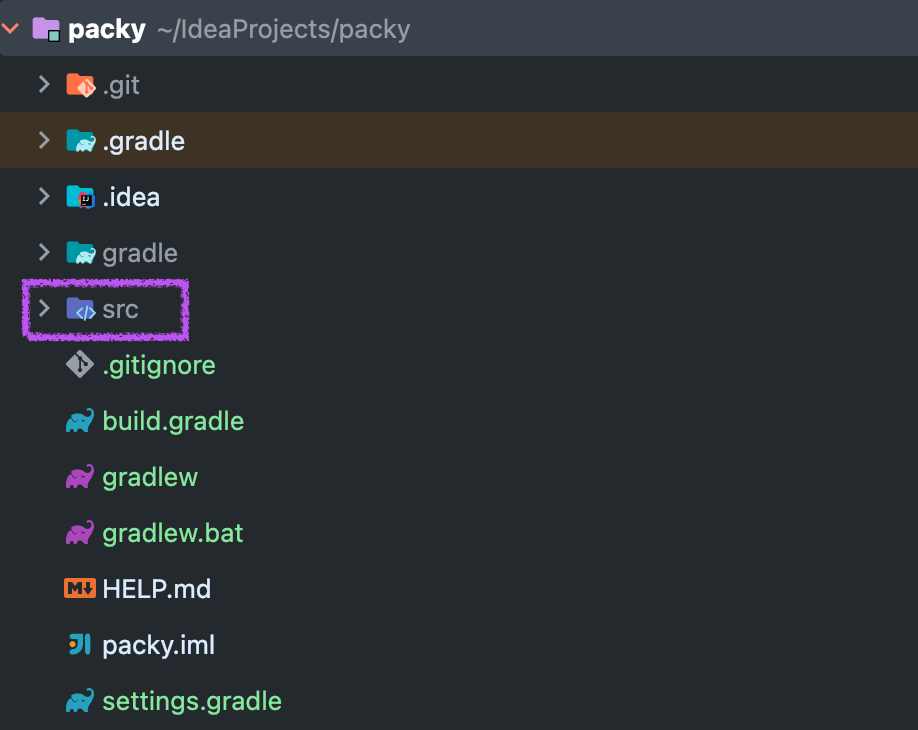 아래와 같이 모듈이 만들어지고 모듈 내부에는 src 디렉토리와 build.gradle이 있다.