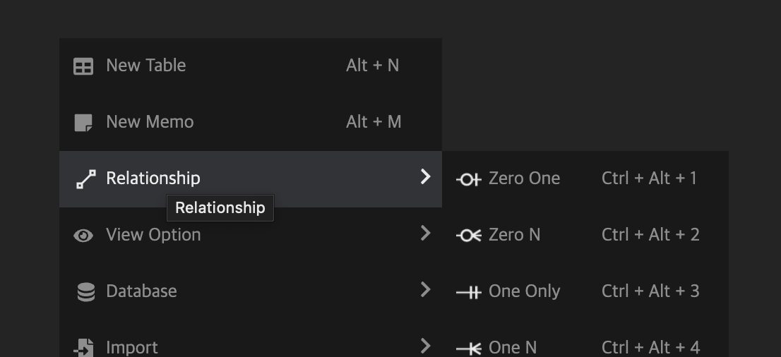 빈 공간에서 우클릭 후 원하는 연관 관계를 선택해준다.