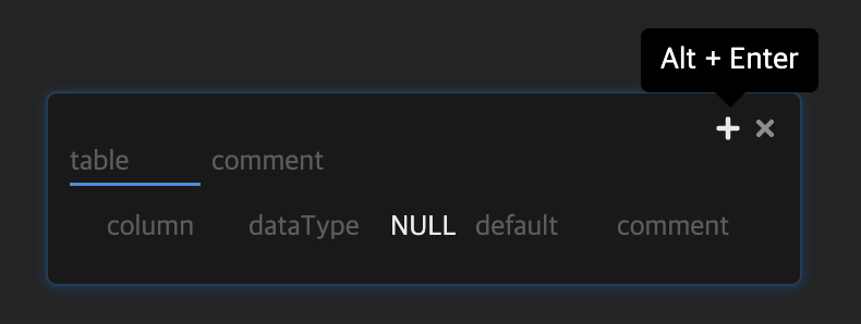 + 버튼이나 Alt + Enter로 컬럼을 추가할 수 있다.