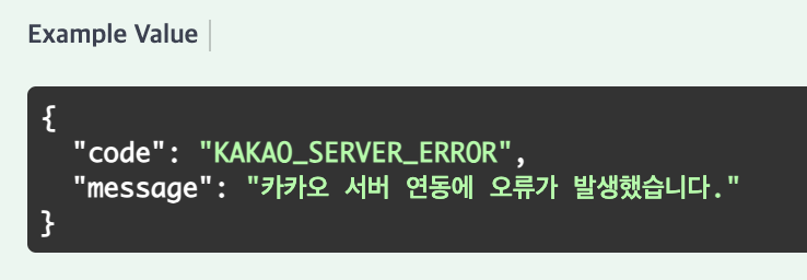 코드 구현을 완료한 후 Swagger에서 아래와 같이 에러 응답 예시를 확인할 수 있다.