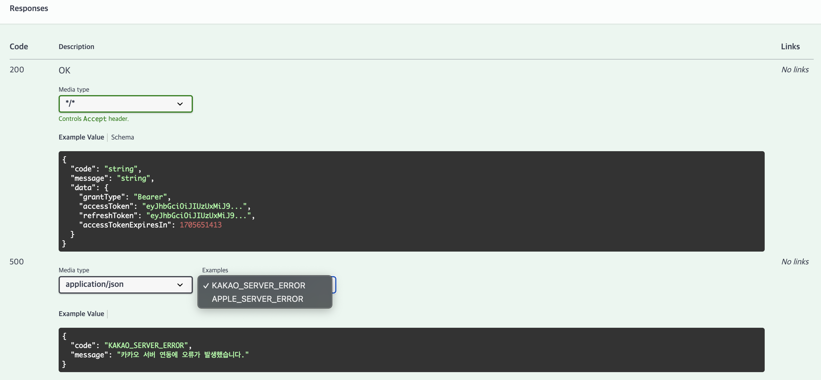 @ApiErrorCodeExamples({ErrorCode.KAKAO_SERVER_ERROR, ErrorCode.APPLE_SERVER_ERROR})