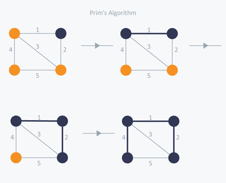 최소 신장 트리를 찾을 수 있는 대표적인 알고리즘 2가지가 있는데, 크루스칼 알고리즘과 프림 알고리즘이다.